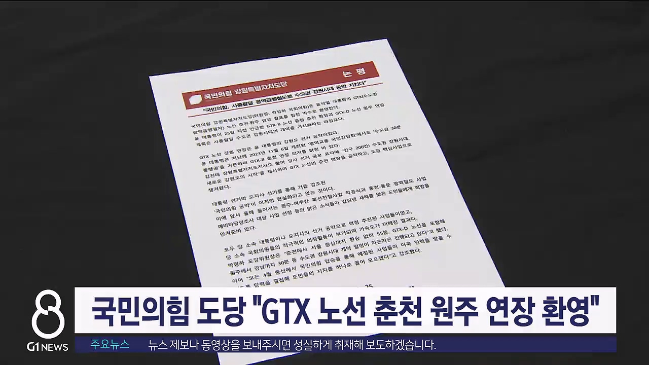국민의힘 강원특별자치도당은 논평을 내고 윤석열 대통령의 GTX 노선 춘천원주 연장 발표를 환영했습니다.