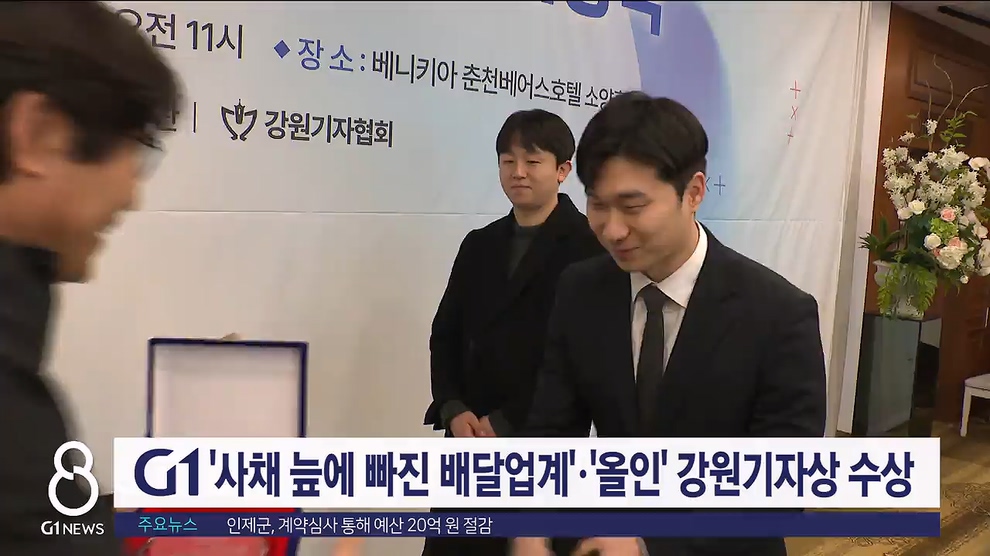 G1방송의 '사채 늪에 빠진 배달업계' 연속보도와 기획특집 '올인'이 2023 강원기자상을 수상했습니다.