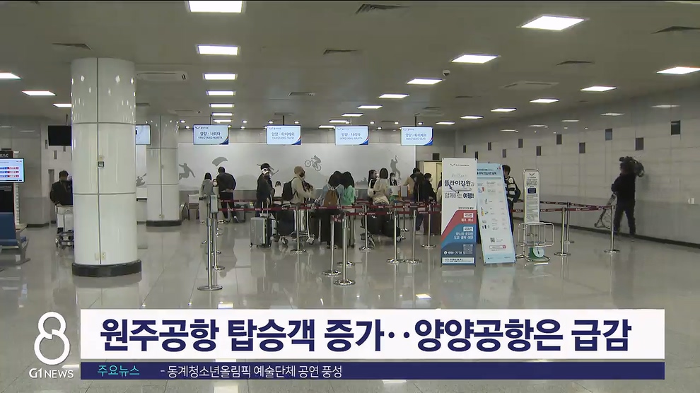 지난해 원주공항의 여행객 수는 늘었지만 양양공항은 크게 감소한 것으로 드러났습니다.