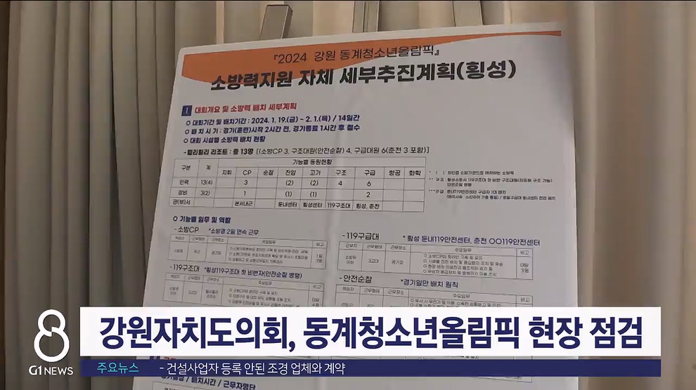 강원자치도의회 현장점검단이 오늘(30일) 횡성과 강릉, 평창 등 동계청소년올림픽이 열리는 현장을 찾아 운영 상황 등을 살폈습니다.
