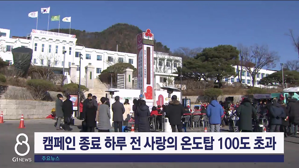 희망2024 나눔캠페인 종료를 하루 앞둔 오늘(30일) 강원 사랑의 온도탑이 100도를 달성했습니다.