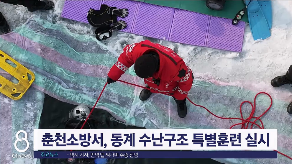 훈련에선 수중 인명구조 기법과 안전 확보 방법, 해빙기 얼음판 깨짐 안전사고 대비 등을 점검했습니다.