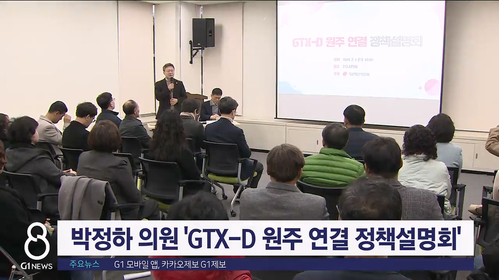 국민의힘 박정하 국회의원이 주최한 'GTX-D 원주 연결 정책설명회'가 원주시의회에서 열렸습니다.