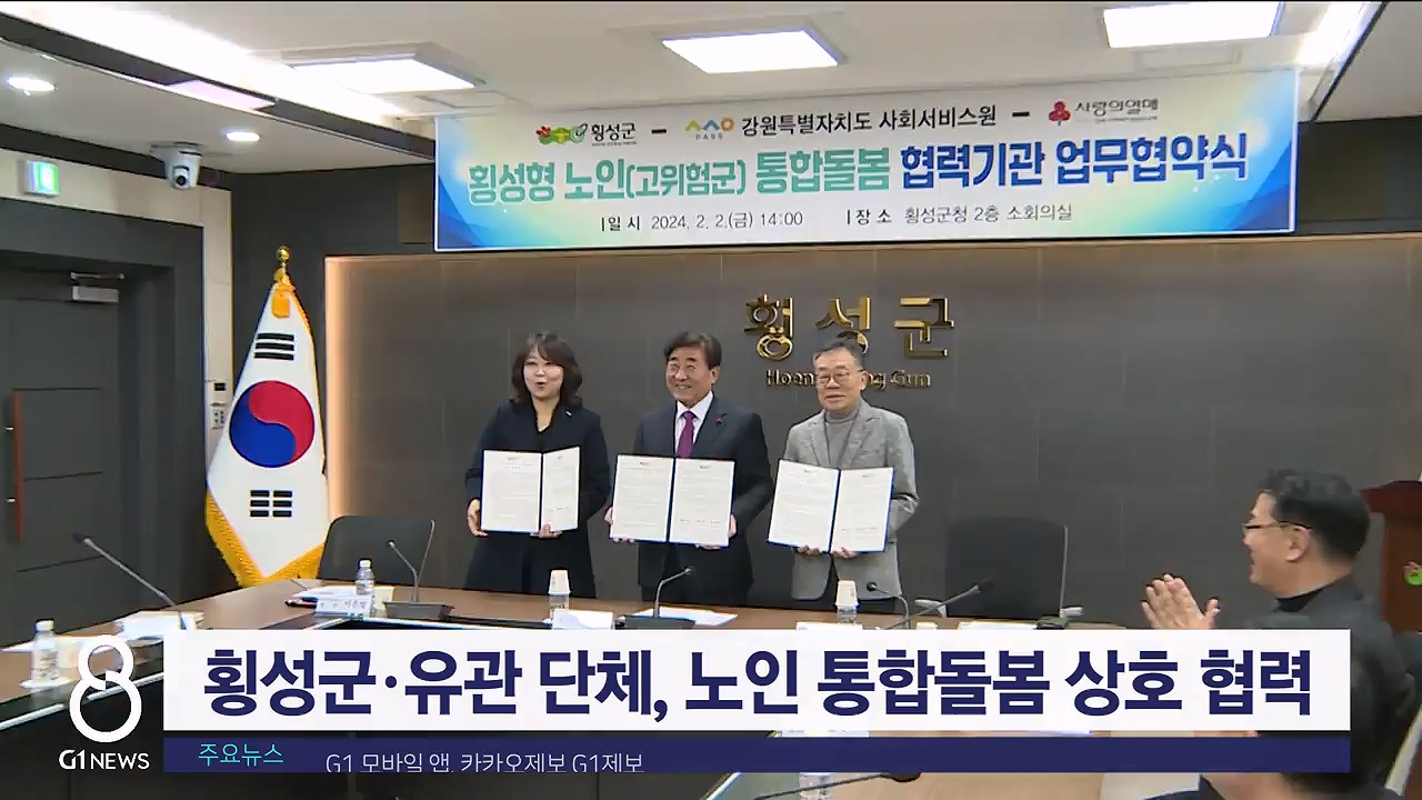 횡성군은 오늘(2일) 강원특별자치도 사회서비스원과 강원사회복지공동모금회와 횡성형 노인 통합돌봄 사업 상호 협력을 위한 업무협약을 맺었습니다.