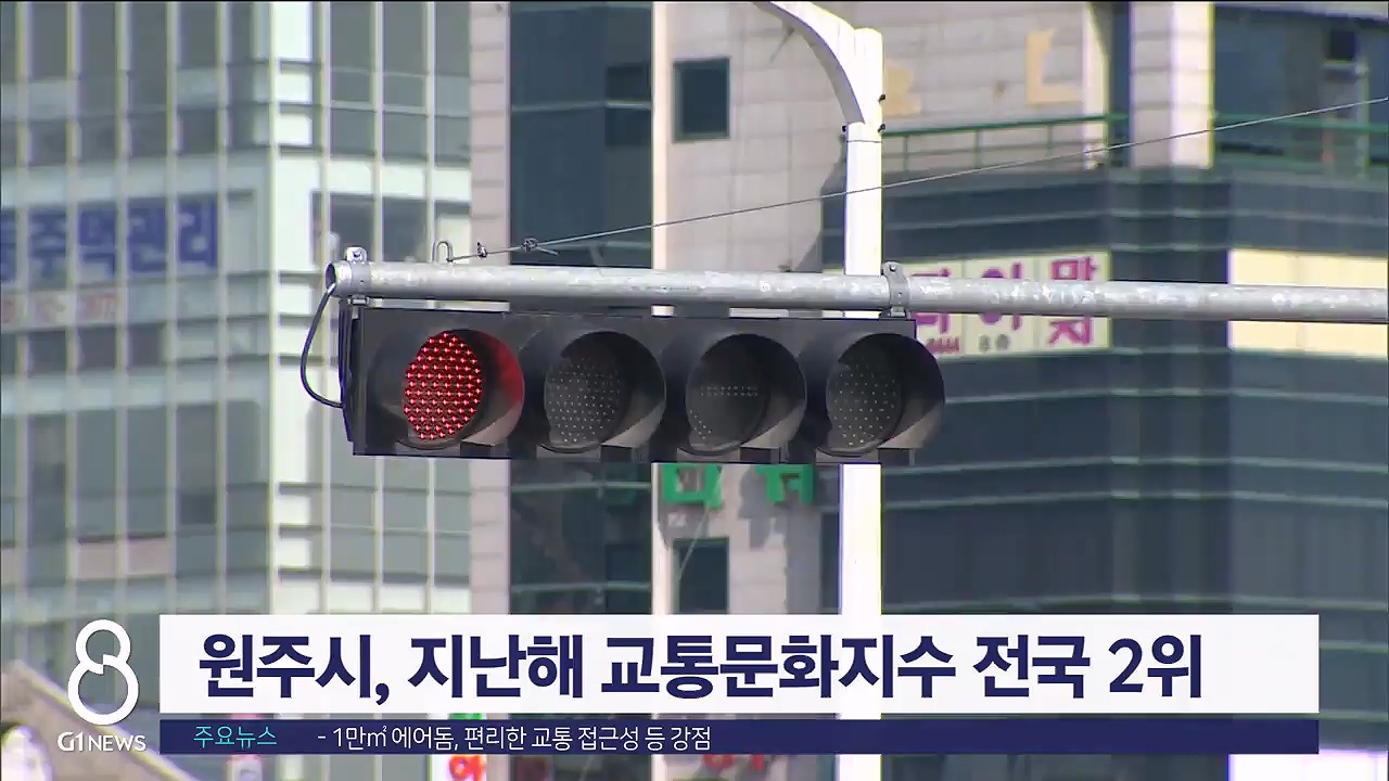 국토교통부가 전국 자치단체를 대상으로 실시한 '2023년 교통문화지수 실태조사'에서 원주시가 인구 30만 명 이상인 전국 29개 도시 가운데 2위를 기록했습니다.