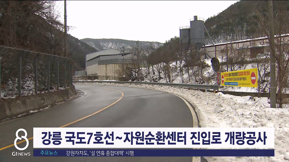 강릉시가 강동면 모전리 국도7호선에서 강릉시 자원순환센터로 진입하는 도로의 개량공사를 합니다.