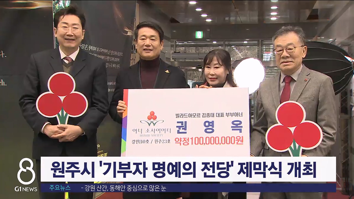 원주시가 나눔을 실천하는 기부자들을 예우하고 기부문화를 확산하기 위해 '원주시 기부자 명예의 전당'을 시청에 설치했습니다.