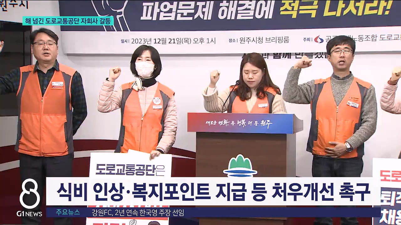 주식회사 도로교통안전관리 노조원들이 모회사인 도로교통공단을 찾아 처우 개선을 촉구했습니다.