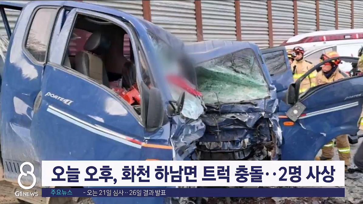 오늘 오후, 화천 하남면 트럭 충돌..2명 사상