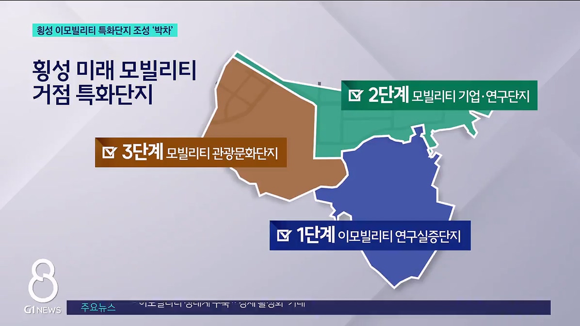 "횡성읍 묵계리에서 가담리로 이어지는 모빌리티 특화단지의 진출입 도로 개설 공사도 오는 7월이면 착공할 전망입니다."