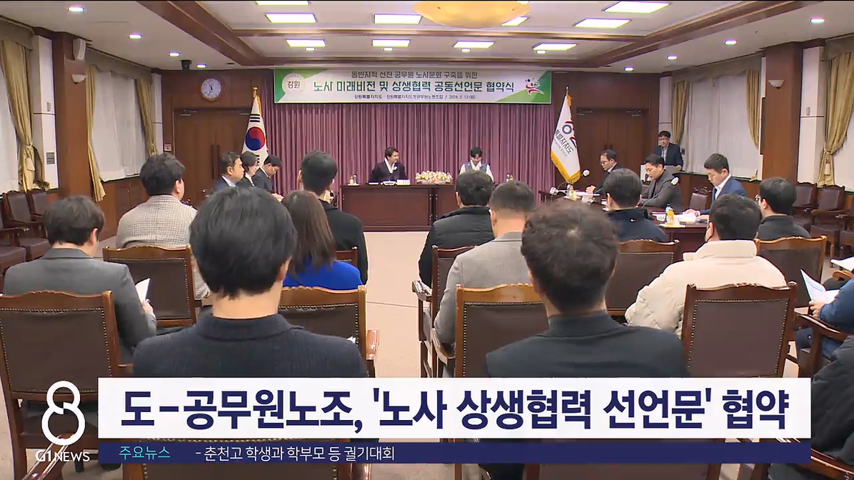 김진태 도지사는 "이번 협약은 조직내부의 상생협력을 넘어 공직 노사문화의 바람직한 방향을 제시했다는 점에서 의미가 크다"고 강조했습니다.