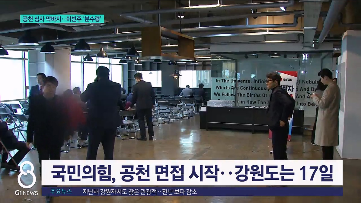 춘천-철원-화천-양구 갑/을 선거구는 각각 6명, 4명이 신청했는데, 변별력을 위해 가급적 세 명 정도로 압축하는 게 당 방침이어서, 일부는 경선에서 배제될 수 있습니다.