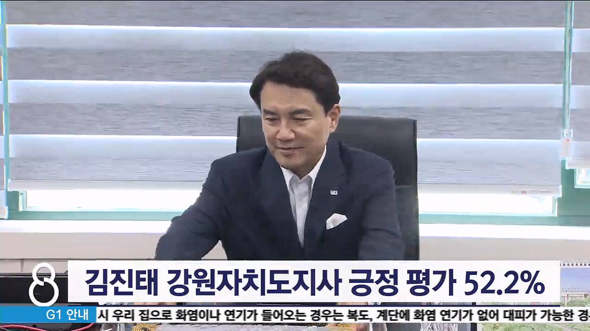 김진태 지사의 도정 운영 긍정 평가는 52.2%로, 전월 대비 0.6% 포인트 올랐습니다.