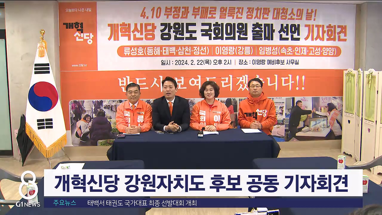 개혁신당은 이기인 중앙당 대변인을 비롯해 강릉 이영랑, 동해태백삼척정선 류성호, 속초인제고성양양 임병성 후보가 참석한 가운데 22대 총선 출마의 변을 밝히고 완주를 다짐했습니다.