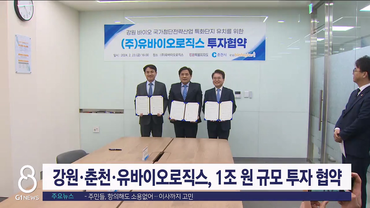 강원특별자치도와 춘천시, 유바이오로직스가 1조 2000억 원 규모의 투자협약을 체결했습니다.