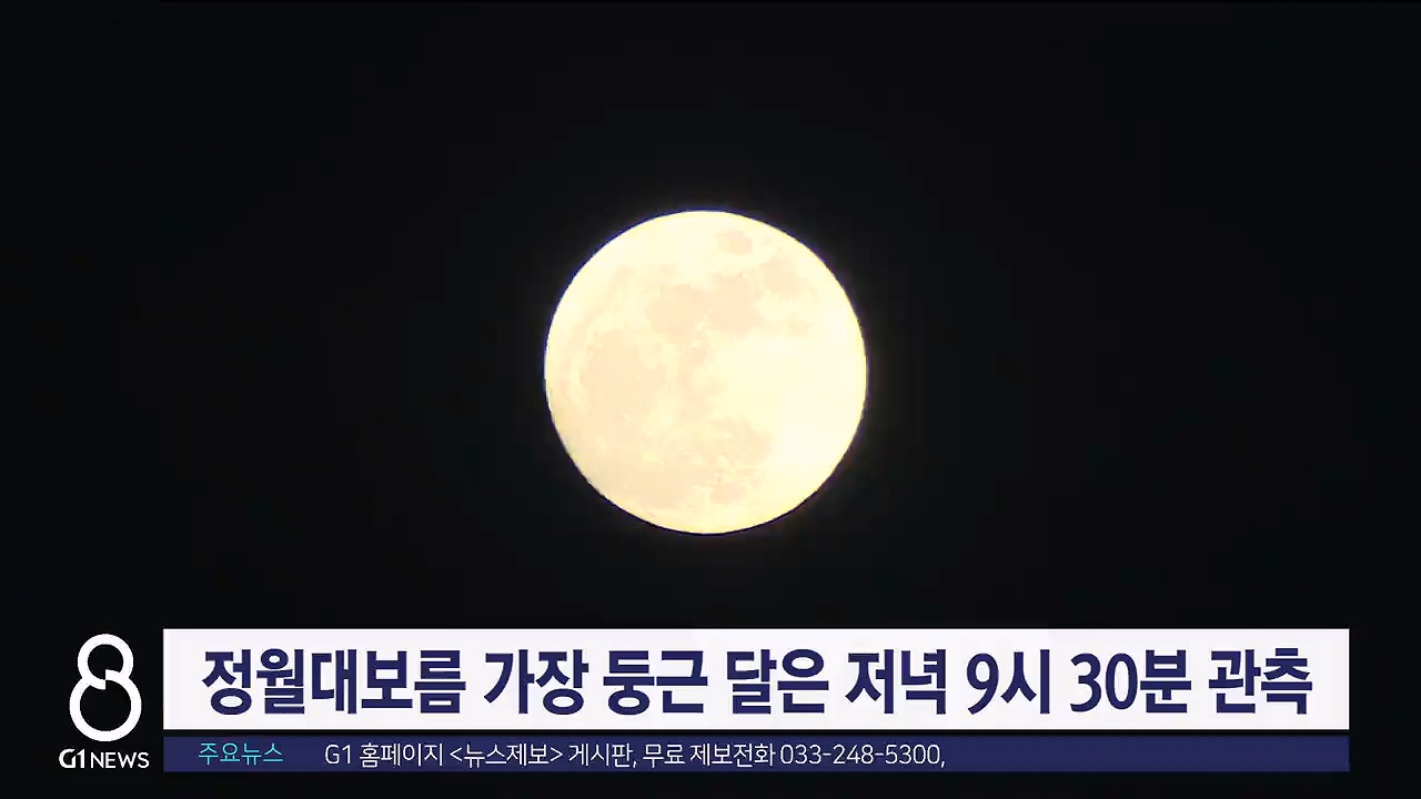 한국천문연구원은 갑진년 정월대보름 달이 뜨는 시간은 저녁 6시 3분, 완전한 둥근달이 되는 시간은 저녁 9시 30분이 될 것으로 관측했습니다.