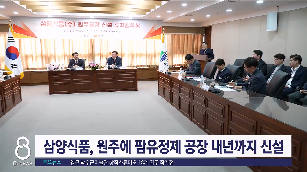 원주시와 삼양식품은 오늘(26일) 시청에서 공장 신설 투자를 위한 투자 협약을 맺고,