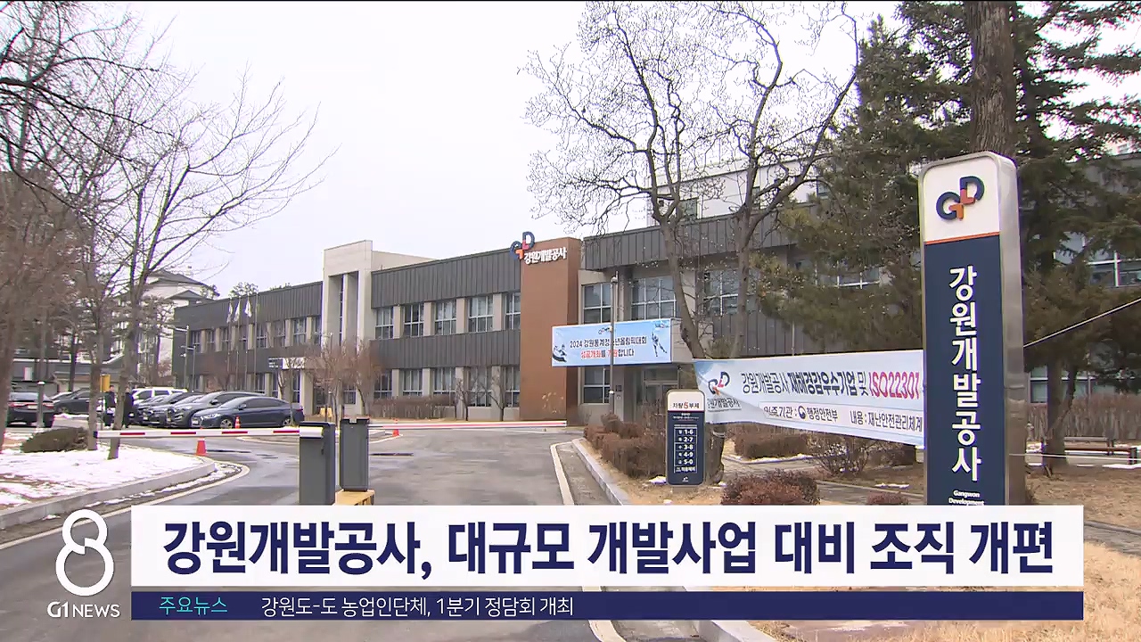 강원개발공사는 춘천 고은리 도시개발을 비롯한 개발 사업이 대폭 확대될 것으로 예상됨에 따라 조직 개편과 인사를 단행한다고 밝혔습니다.