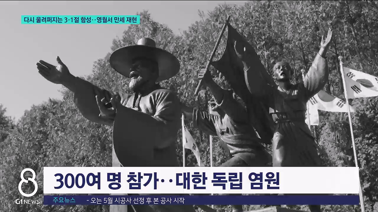 3.1절인 오늘, 영월뿐 아니라 춘천과 원주 등 도내 곳곳에서 순국선열을 기리기 위한 행사가 열렸습니다. G1뉴스 정창영입니다.