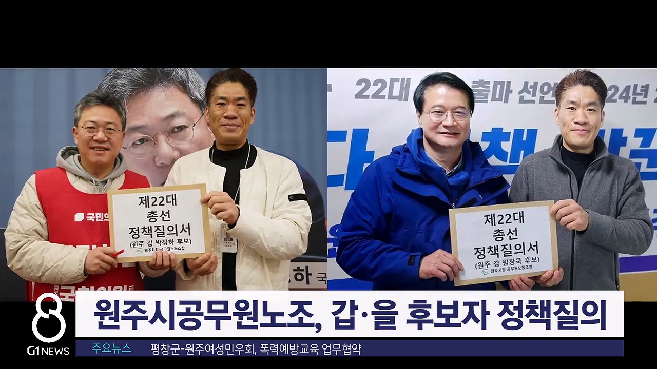 원주시청 공무원노동조합이 원주시 갑과 을 선거구에 출마한 여야 국회의원 후보자들에게 정책 질의서를 전달했습니다.