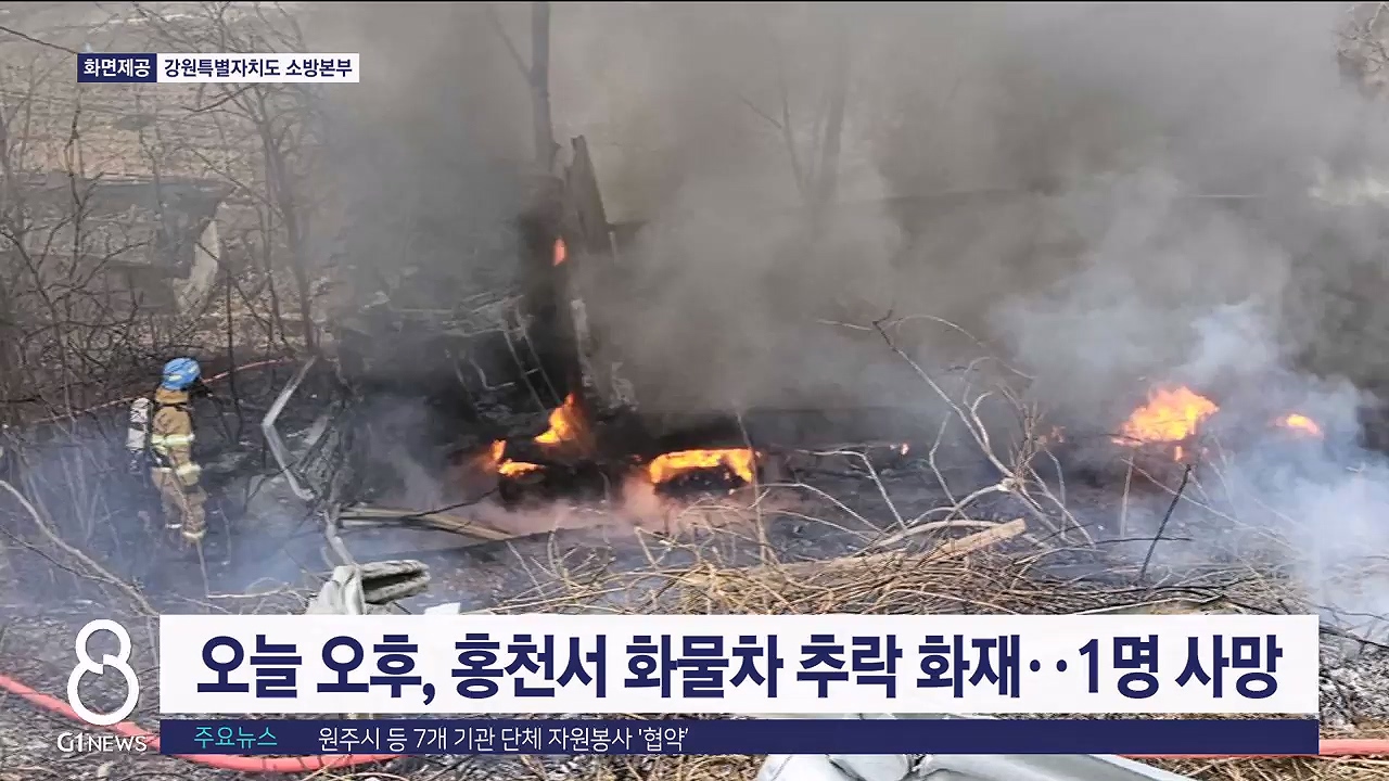 오늘 오후, 홍천서 화물차 추락 화재..1명 사망
