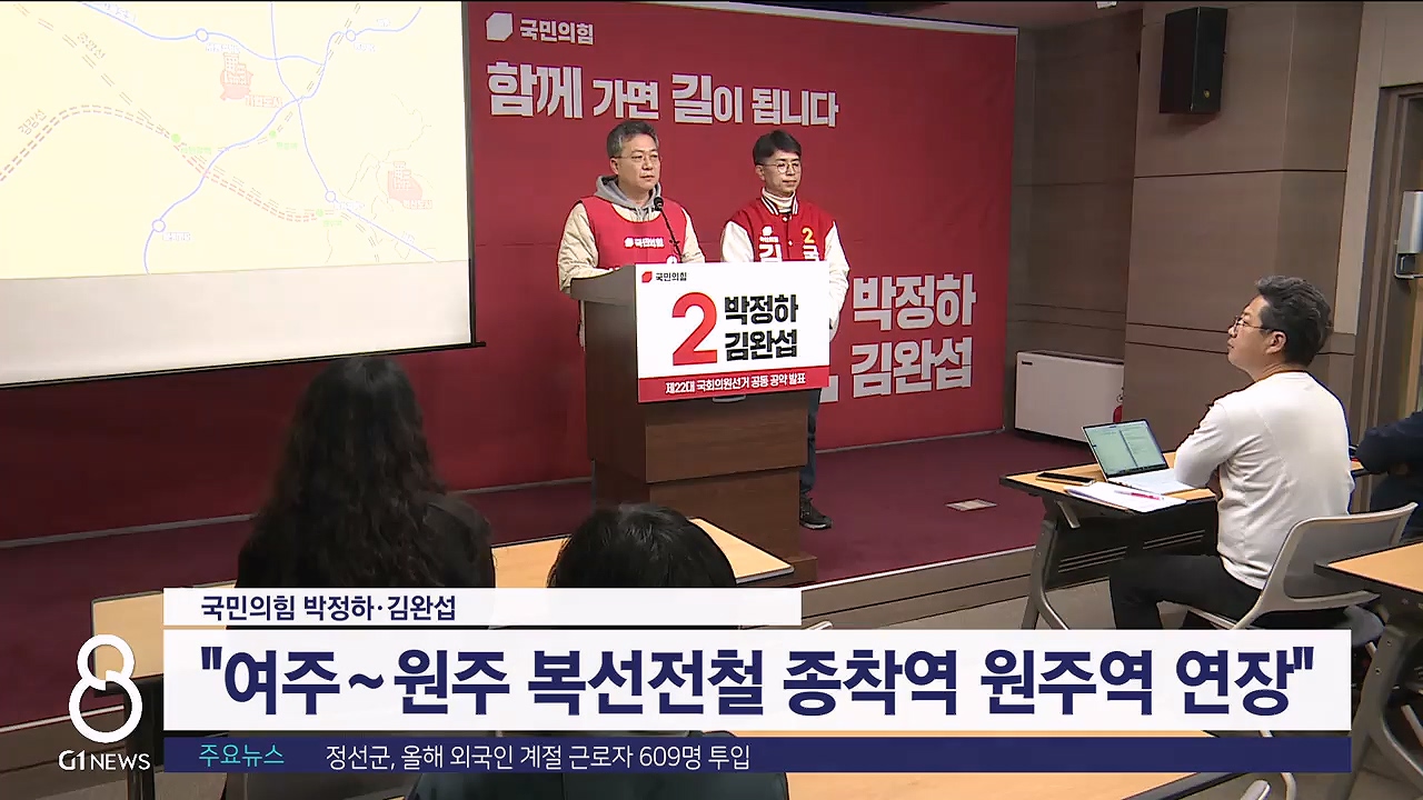 국민의힘 원주갑 박정하 후보와 원주을 김완섭 후보는 오늘(5일) 원주시청에서 공동 기자회견을 열고,