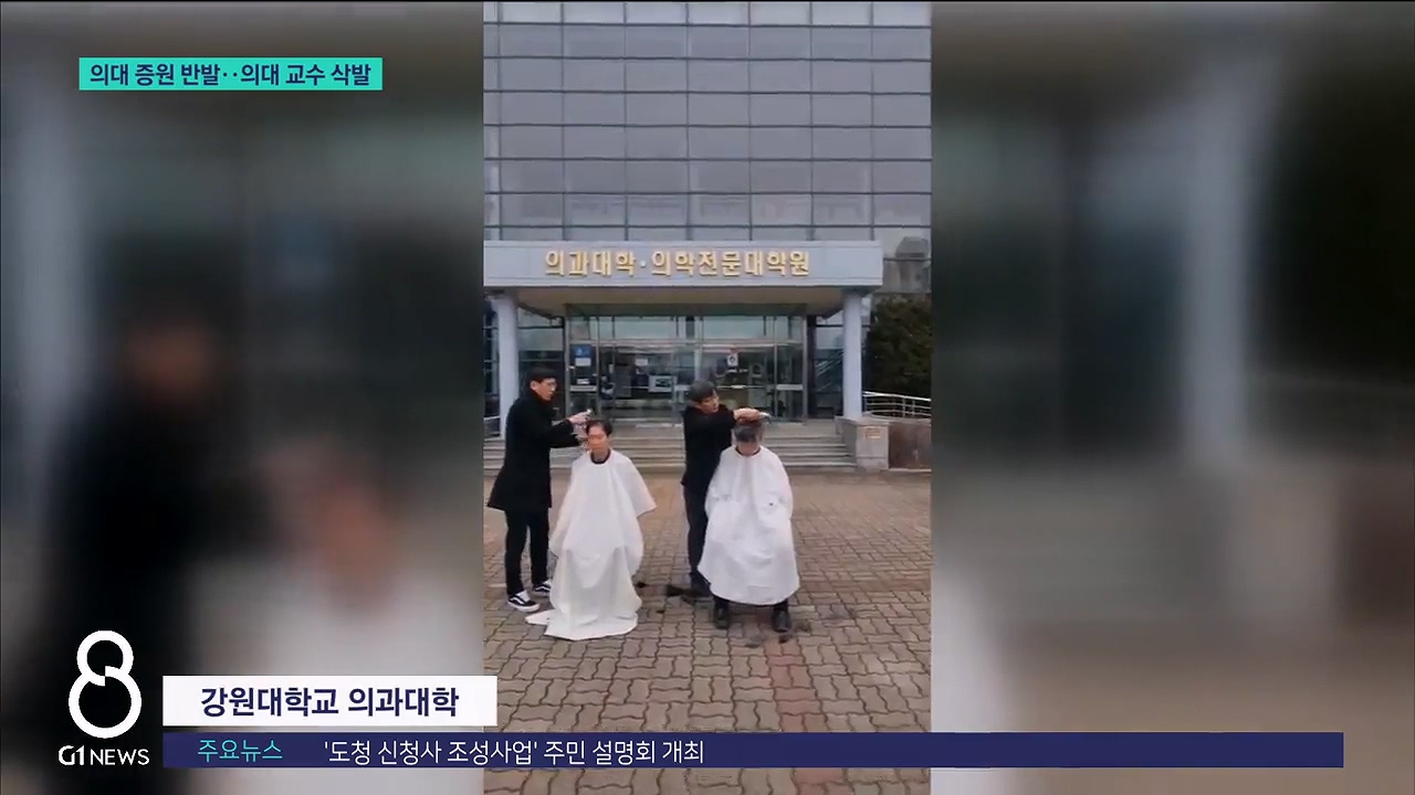 강원대에선 대학 측의 의대 증원 신청에 반발한 교수 삭발식이 열렸습니다.