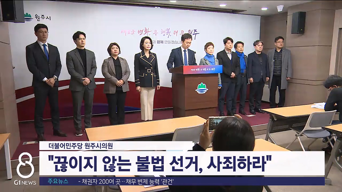 더불어민주당 원주시의원들은 오늘(6일) 원주시청에서 성명을 발표하고, "최근 국민의힘 A 원주시의원이 선거법 위반으로 검찰에 고발당했다"며,