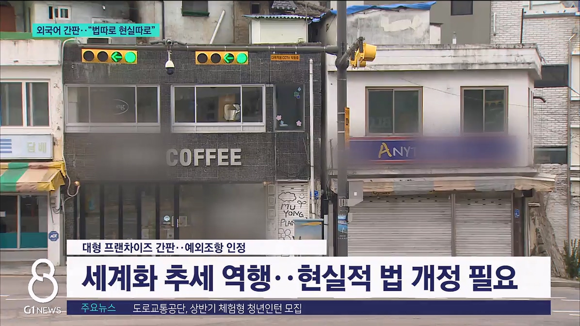 "외국어로만 표기된 간판은 현행법상 위법이지만, 실질적인 제재는 어렵습니다."
