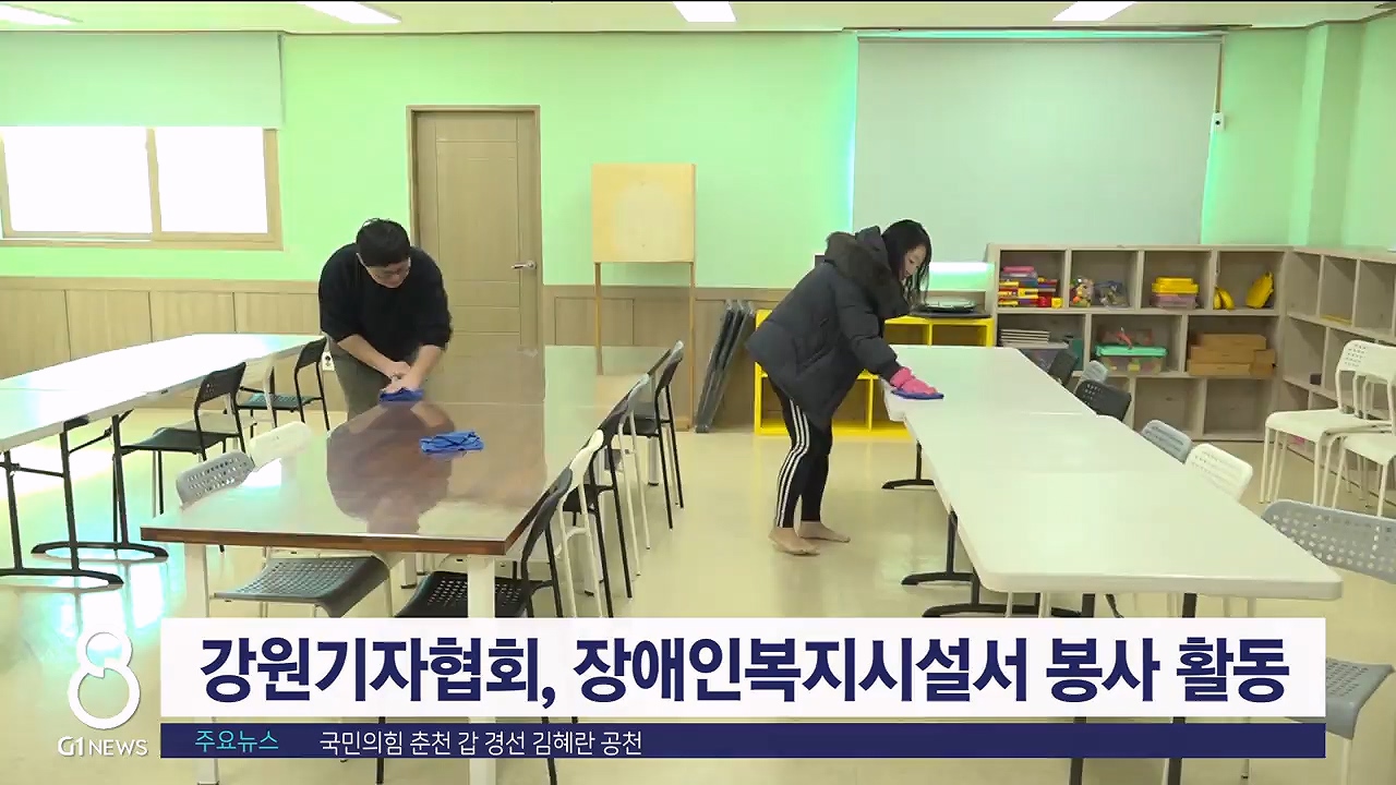 강원기자협회가 오늘(9일) 춘천의 한 장애인복지시설에서 봉사 활동을 펼쳤습니다.