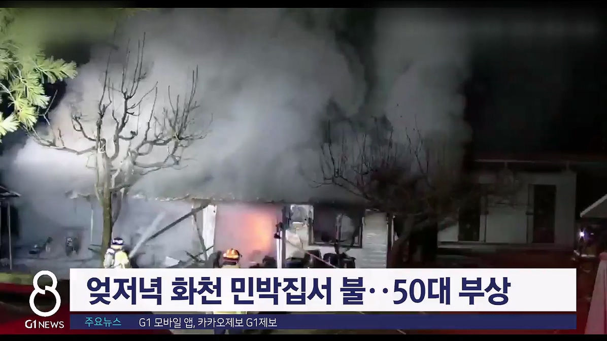 어제 오후 8시 29분쯤 화천군 사내면의 한 민박집에서 불이 나 1시간 30여분 만에 꺼졌습니다.