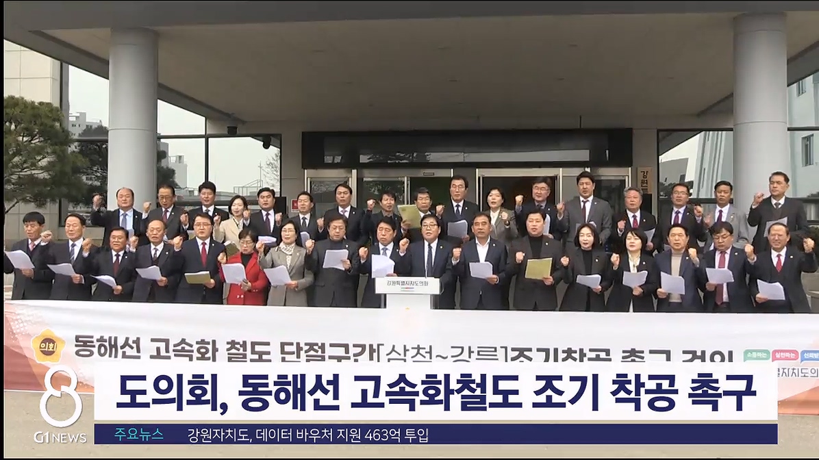 강원자치도의회가 오늘(12일) 동해선 고속화철도 단절 구간인 삼척에서 강릉 간 조기 착공을 촉구했습니다.
