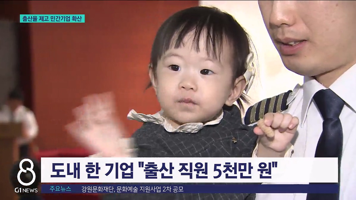 "도내에서도 강릉의 한 기업이 최근 2년 내 출산한 직원 2명에게 각 5천만 원씩, 1억 원을 지급하기로 했습니다."
