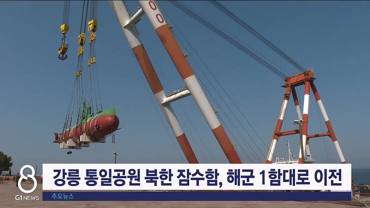강릉시는 통일공원에 전시되고 있던 북한 잠수함을 인근 해군 1함대 사령부로 이전 작업을 마무리했다고 밝혔습니다.