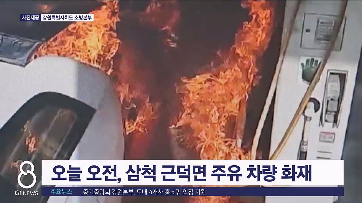 오늘 오전 9시43분쯤 삼척 근덕면 상맹방리의 한 주유소에서 주유중이던 차량에서 화재가 발생해 7분여 만에 진화됐습니다.