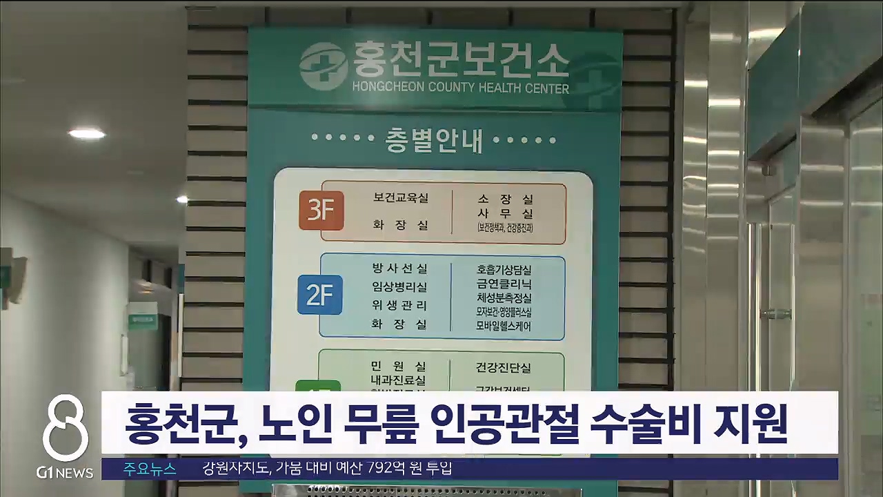 홍천군보건소가 저소득층 노인을 대상으로 무릎 인공관절 수술비를 지원합니다.
