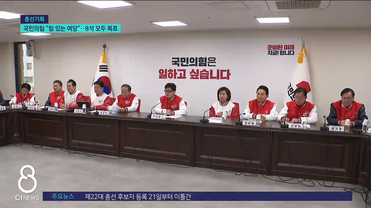국민의힘은 이번 총선에서 도내 8석 전석 석권을 목표로 삼았습니다.