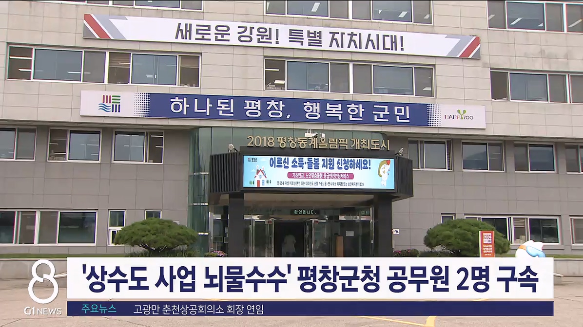 상수도 사업 추진 과정에서 특정업체로부터 수년에 걸쳐 뇌물을 수수한 혐의를 받는 평창군청 공무원 2명이 오늘(19일) 경찰에 구속됐습니다.
