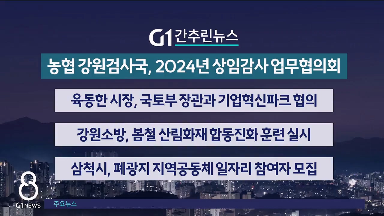 농협중앙회 강원검사국은 오늘 올해 감사방향과 추진계획을 공유하고, 사고 예방을 위한 다짐을 결의하는 등 '2024년 강원농협 상임감사 업무협의회'를 개최했습니다.