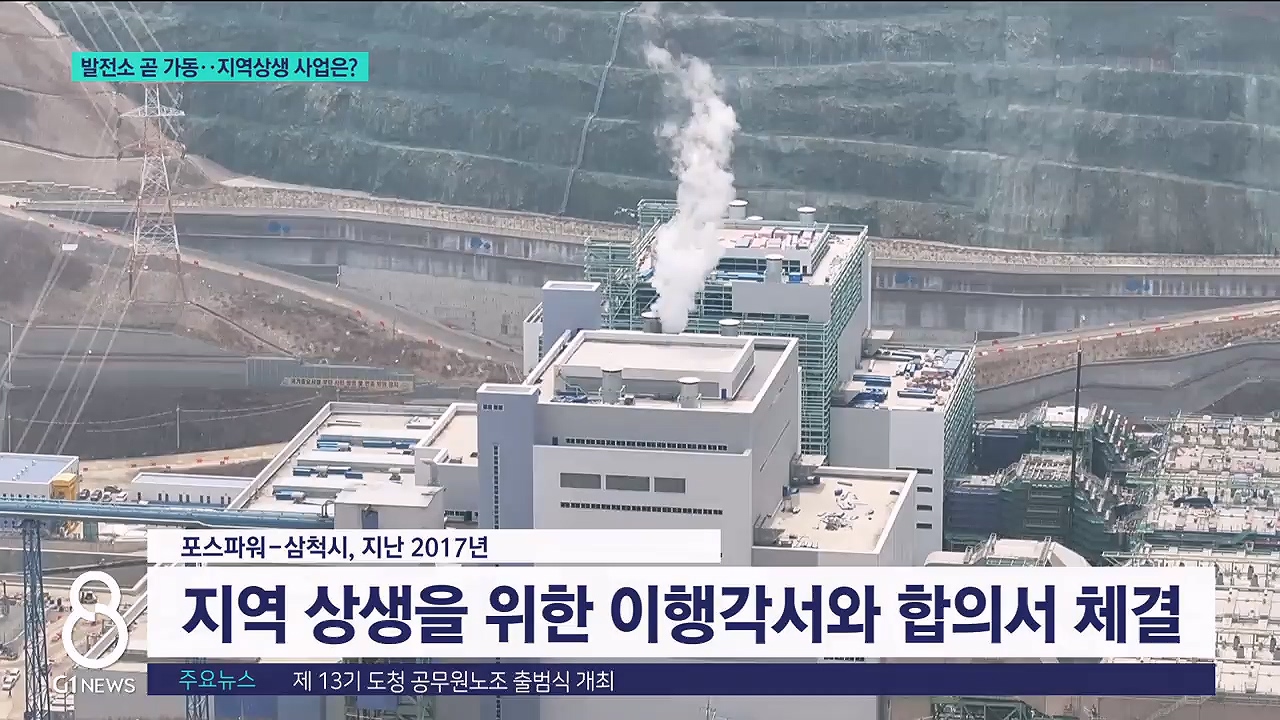 삼척블루파워 화력발전소를 건설한 포스파워는 지난 2017년 4월 지역상생을 위한 이행각서와 구체적 내용이 담긴 합의서를 삼척시와 체결했습니다.