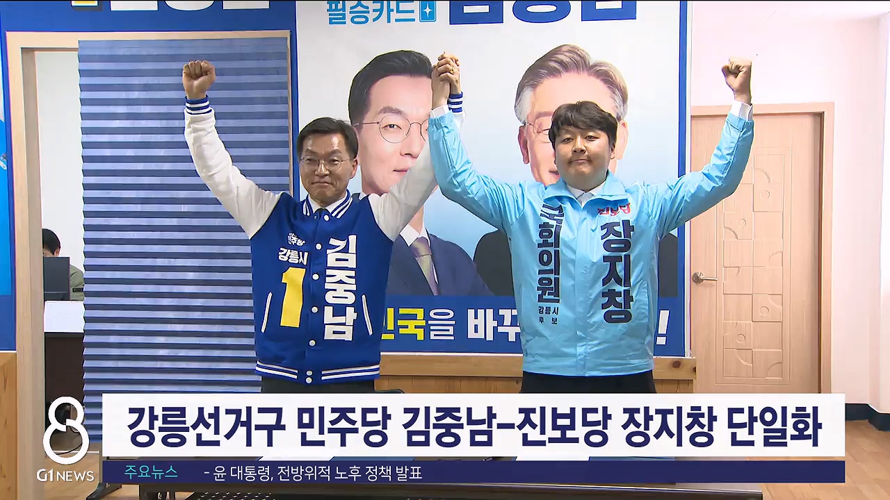 다음 달 치러지는 제22대 총선 강릉선거구에 출사표를 던진 더불어민주당 김중남 후보와 진보당 장지창 후보가 단일화에 합의했습니다.