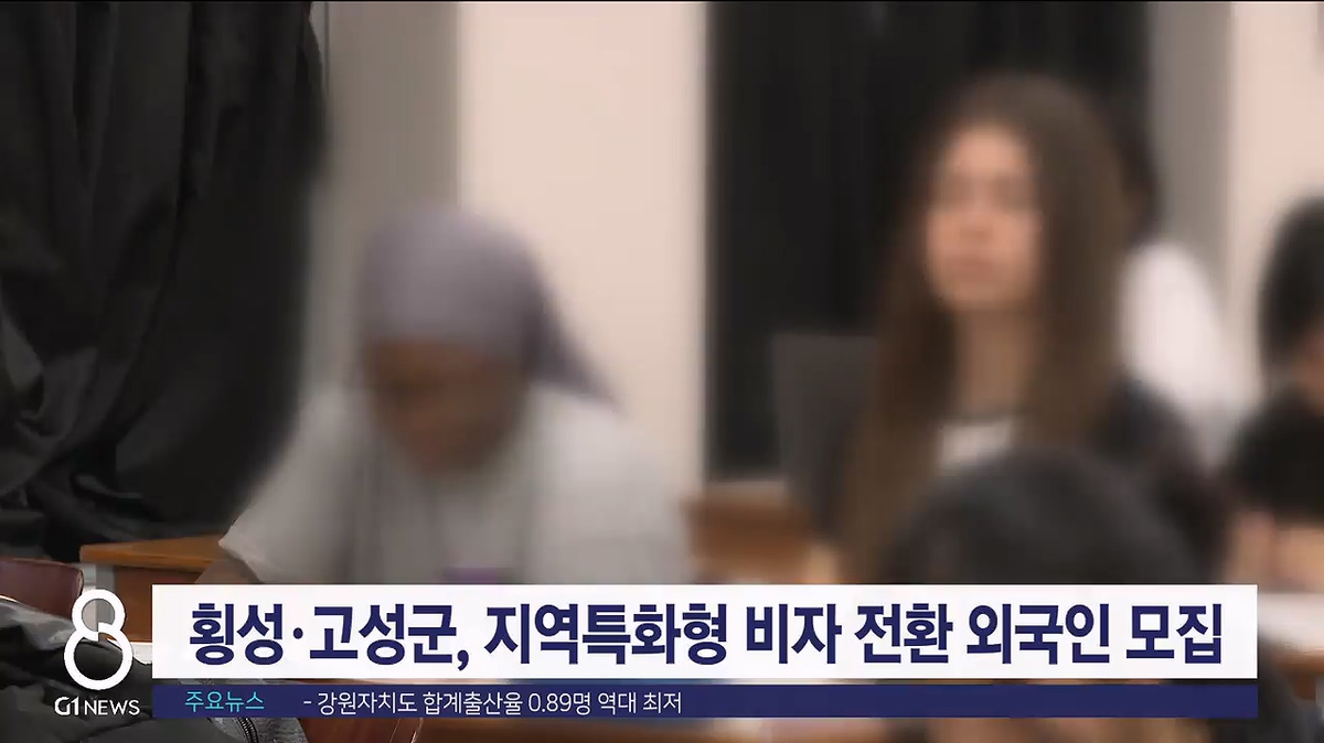 도내에서는 지난 1월 법무부의 지역특화형 비자 사업 공모에 선정된 횡성군과 고성군이 지역우수인재 210명과 지역특화동포 20명을 모집합니다.