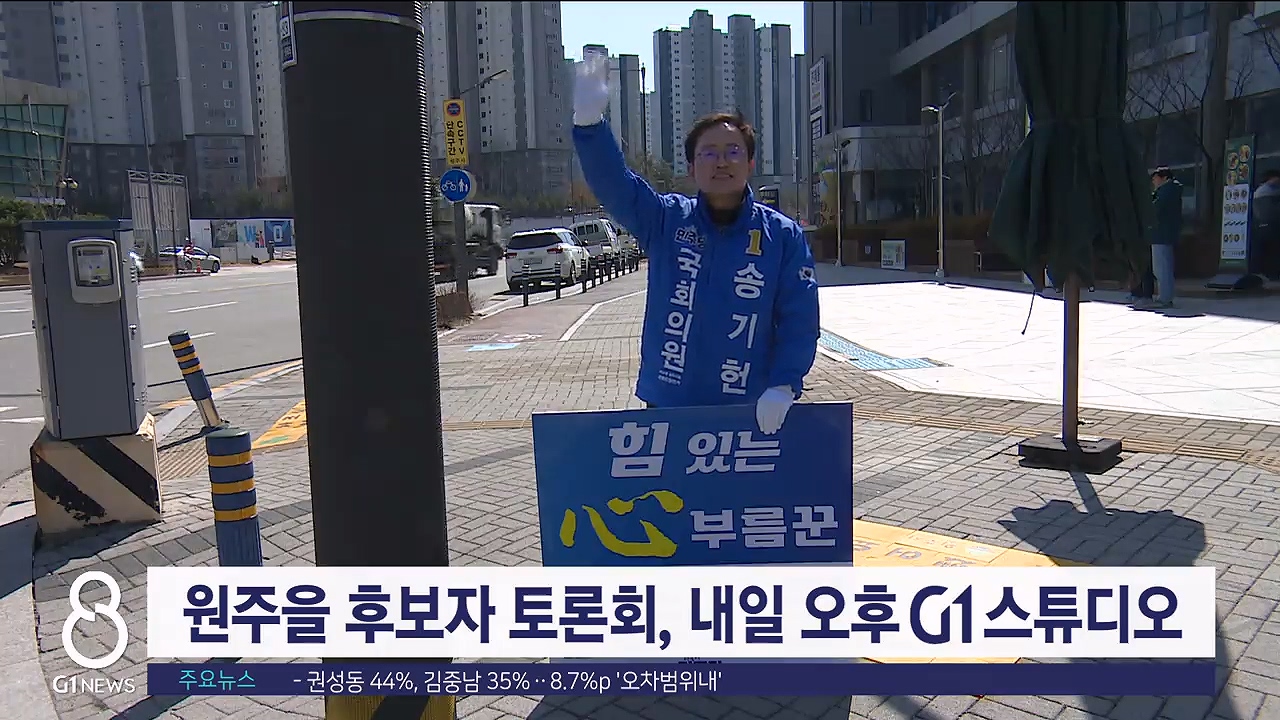 원주을 토론회는 내일(26일) 오후 6시30분 G1방송과 유튜브 채널을 통해 생방송됩니다.