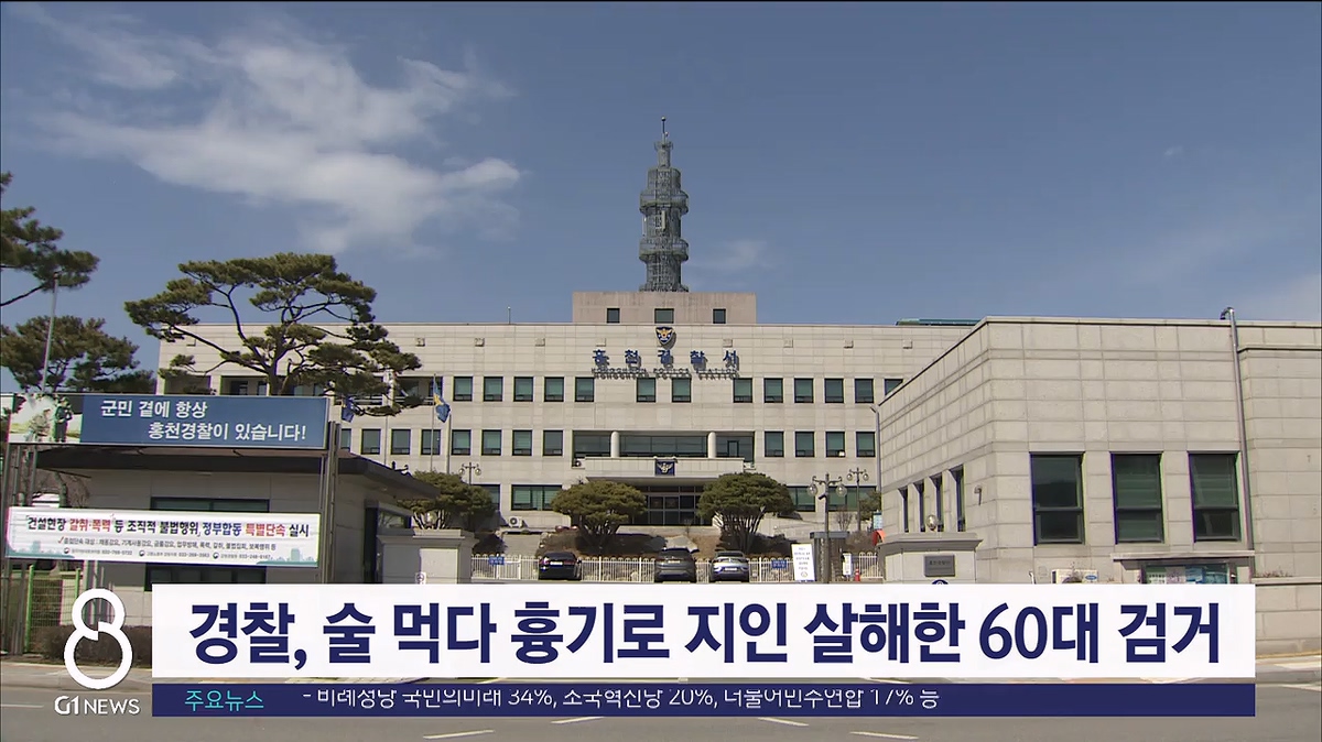 홍천에서 술을 마시다 지인에게 흉기를 휘둘러 숨지게 한 60대가 경찰에 붙잡혔습니다.