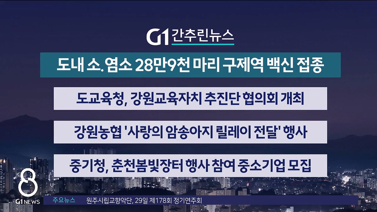 강원자치도는 다음달 1일부터 14일까지 2주간 도내 소와 염소 28만 9천두에 대해 구제역백신 일제 접종을 합니다.