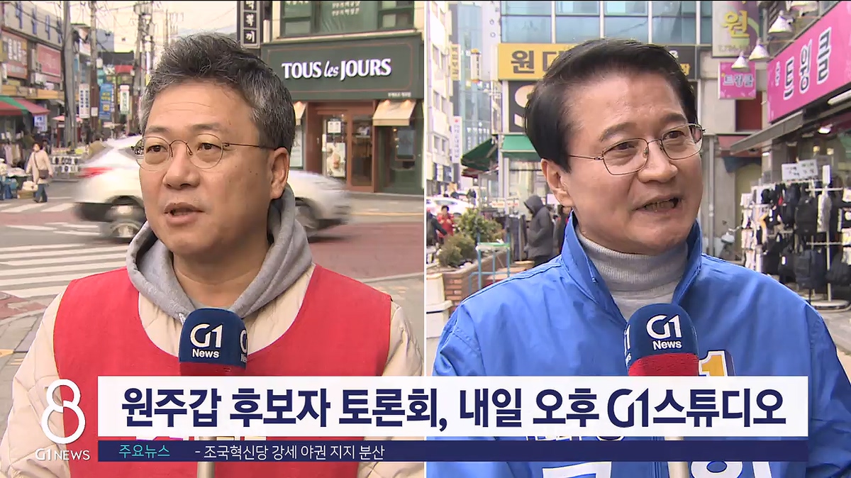 원주갑 토론회는 내일(28일) 오후 6시30분 G1방송과 유튜브 채널을 통해 생방송됩니다.