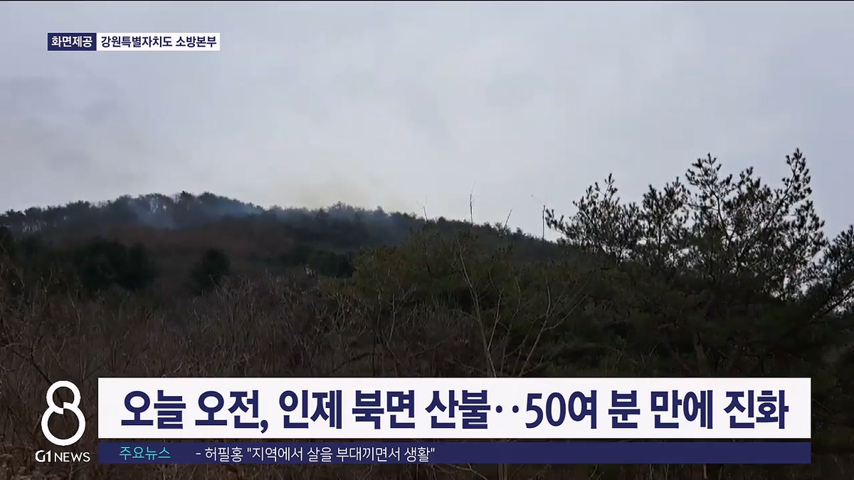 오늘 오전, 인제 북면서 산불..50여 분 만에 진화