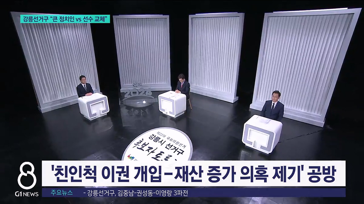 제22대 국회의원 선거 강릉선거구 후보자 토론회는 시종일관 치열한 신경전이 펼쳐졌습니다.