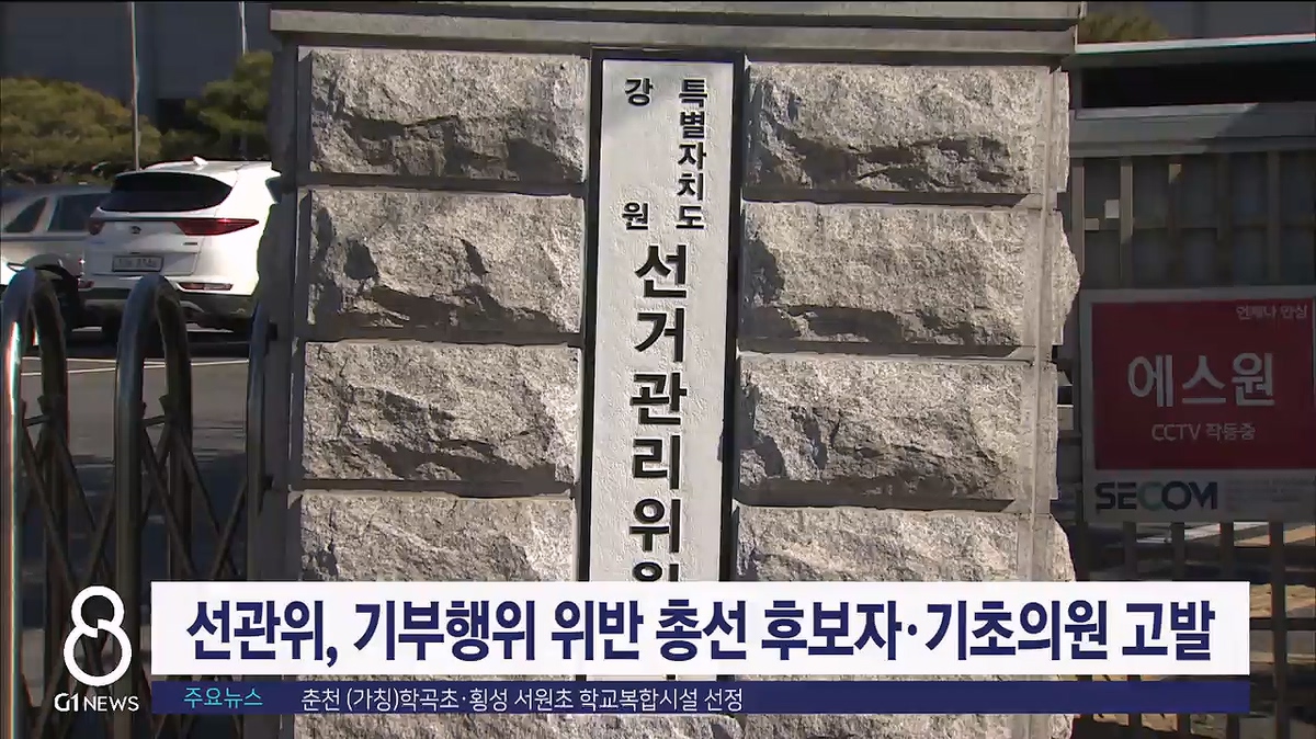 강원자치도 선거관리위원회가 기부행위 위반 혐의로 국회의원 선거 후보자와 현직 기초의원을 검찰에 고발했다고 밝혔습니다.