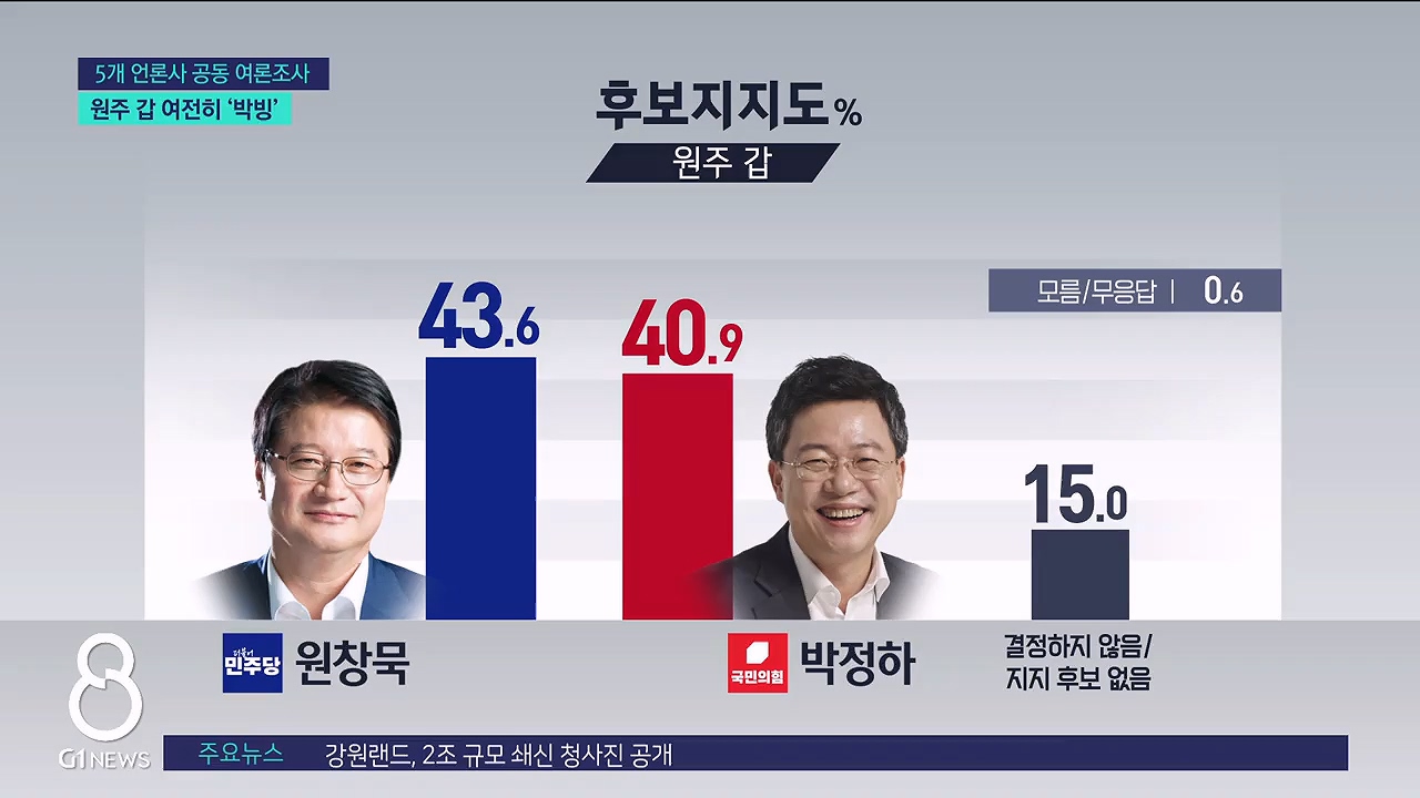 /원주 갑의 부동층 비율은 15%로 다소 높았습니다.
